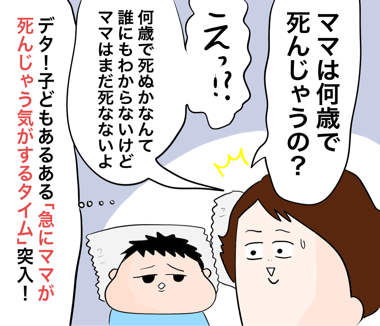 何歳で死ぬの?何歳で死ぬの?お母さん死んじゃったらどうしよう、、としんみりします。