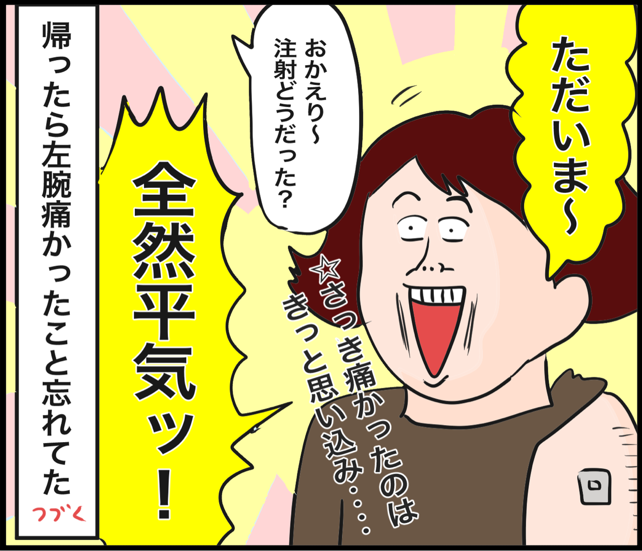打った直後腕痛いかも?→結局痛みなし