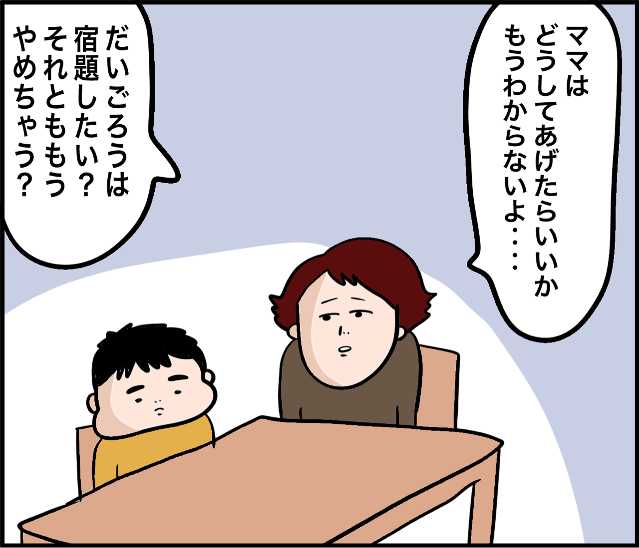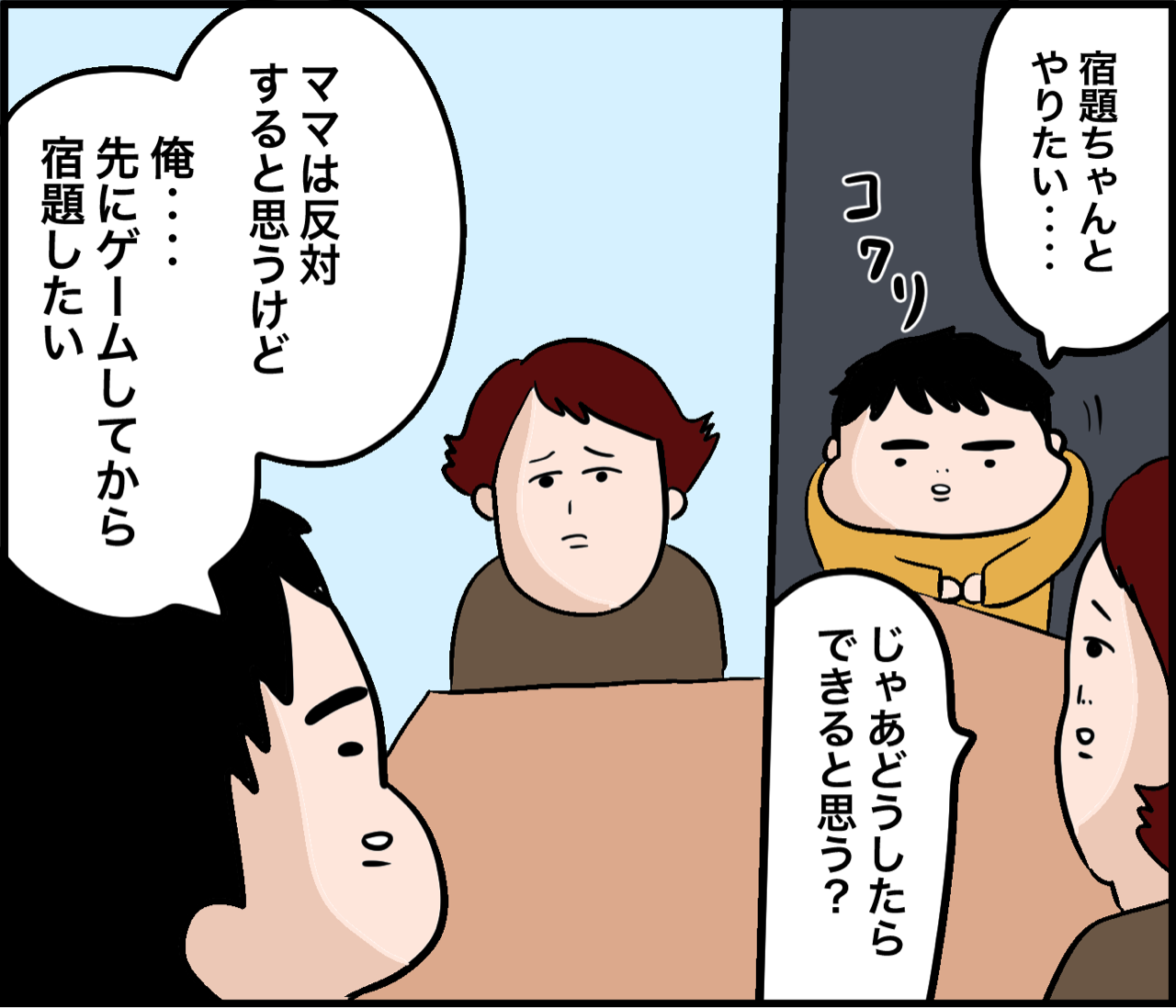 2024年02月11日 宿題と家族の4年間⑧ こんにちは!4児のオカンあざみです!登場人物紹介→コチラ☆読者登録の手順はコチラをご参照ください→⭐︎↓前回はコチラ おま‥‥本当にだいごろうか?つづきは↓ ↓親子喧嘩したあとの仲直りが独特すぎ ↑目指せ10000フォロワー!現在3471名です 「宿題と家族の4年間」カテゴリの最新記事 タグ :#だいごろう#宿題 < 前の記事次の記事 > コメント コメント一覧 (2) 2. 名無しさん 2024年02月11日 22:11 ほんっっとに、兄弟でも何でも別の人間なんだなってくらいに個性ありますよね。 うちも兄弟で全然宿題への意欲というか習慣付けの苦労が違いました。 だいごろう君とこうしてトライアンドエラーを繰り返して努力したことは、きっと何かしらの芽を生むはずと続きを楽しみにしてます。 0 あざみ がしました 1. 名無しさん 2024年02月11日 21:27 シリーズ途中なので、感想は最後まで読んでからにしますが、 下の3人も見ながら、宿題させるなんてすごいっすわ。 0 あざみ がしました コメントフォーム 名前 コメント 記事の評価 リセット リセット 顔 星 情報を記憶 コメントを投稿する