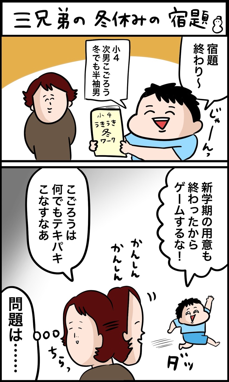 ウチの長男は小4なので、こちらからあまりうるさく言わずにしてたら、冬休み最終日の今日、終わってない課題を発見!