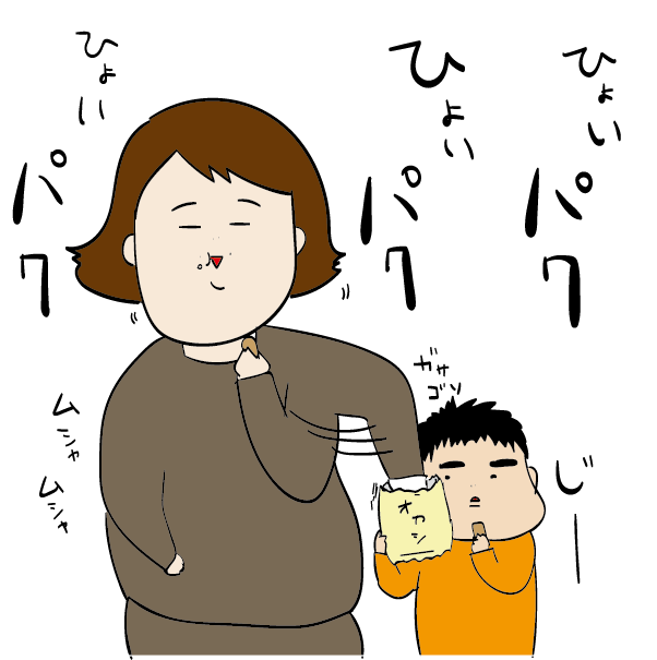 横からお菓子をパクパクと