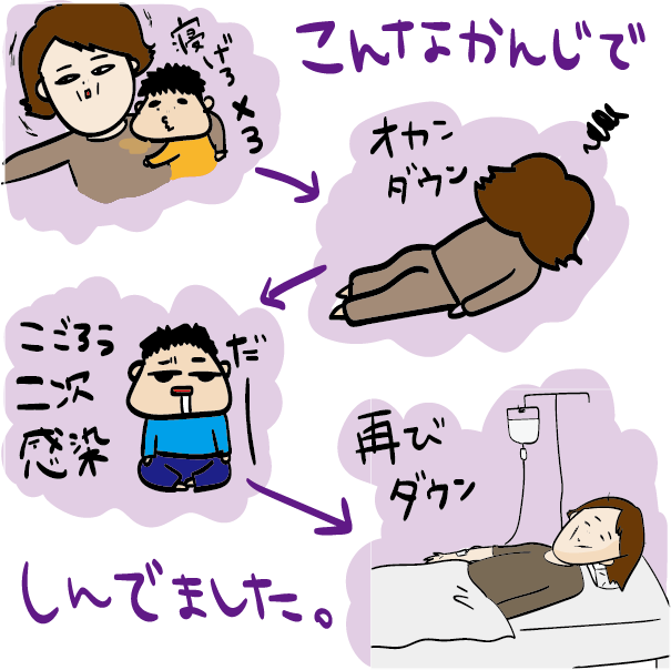 2人子連れ、ご自身の体調不良、プラス妊娠中となると、ほんまにしんどかったでしょう。。お察しいたします。早く早く良くなりますように。。