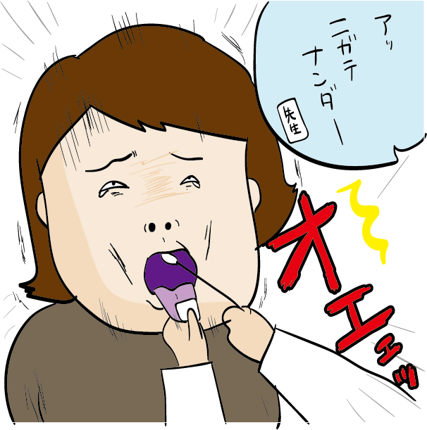 処置とは、喉の奥に薬を塗る