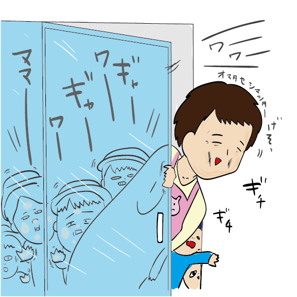 押し寄せる園児達の圧力で