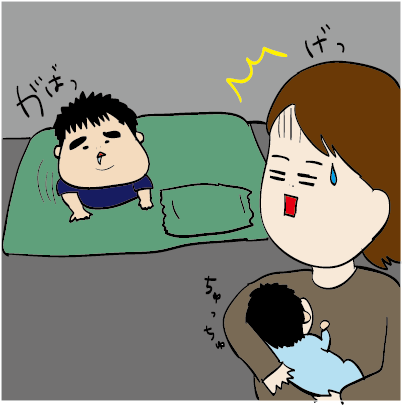 次男を寝かしつけてる間に長男が眠さのピークでグズり始め…